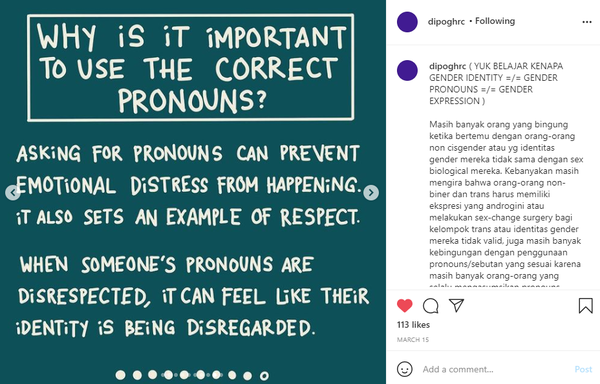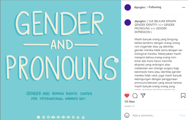 International Women's Day is a worldwide event that celebrates women's social, economic, cultural, and political achievements. It's frequently commemorated by groups who join together to celebrate women's achievements or rally for women's equality to marks a call to action for accelerating gender parity. I was responsible for content research and copywriting for GHRC's "Gender and Pronouns" online campaign for International Women's Day 2021.